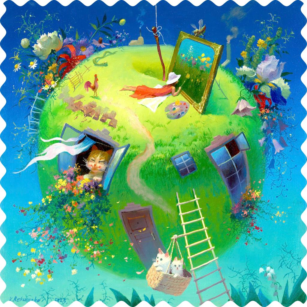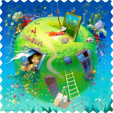 Artifact Puzzles - Rekunenko Green Apple With Cats Wooden Jigsaw Puzzle