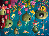 A 409 piece wooden jigsaw puzzle of the lush Sky Village painting by Heather Gauthier. This is from our Ecru line, so the image is matte, and the puzzle is extra beautiful.