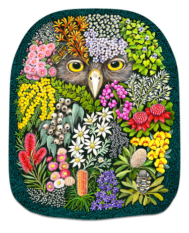 Artifact Puzzles - Sandi Rigby Botanical Owl Wooden Jigsaw Puzzle