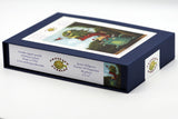Like all our puzzles, the pieces are laser-cut from 1/4" thick wood. Made in the USA. Packaged in a small box with a magnetic clasp (cut the seal, don't tear).